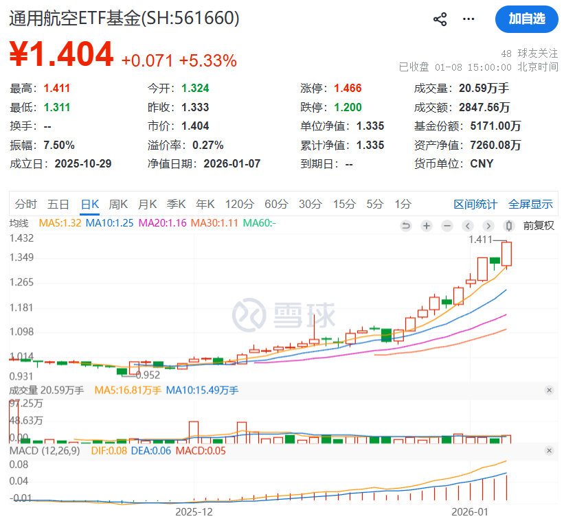 商业航天卷土重来,通用航空ETF基金(561660)涨了5.33%,从11月24日开始算,大概一个半月涨了47%。